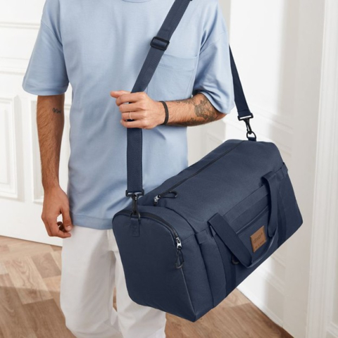 Con asa larga regulable y removible y bolsillo especial para zapatos.